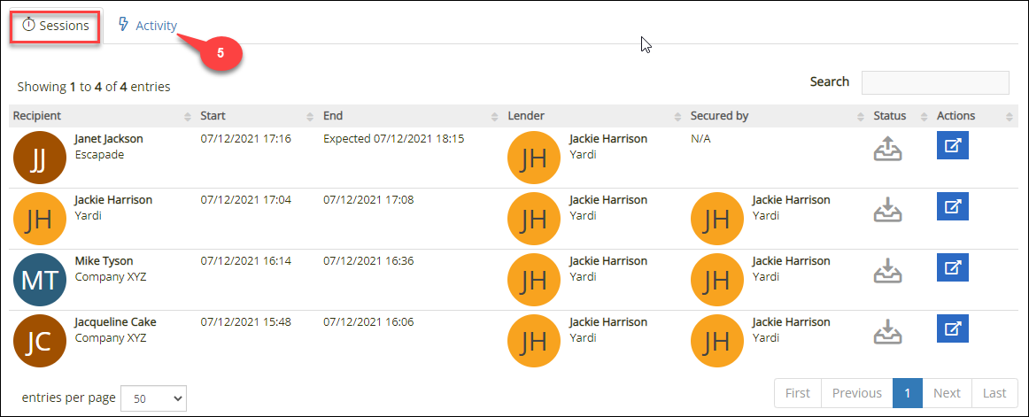 6. You can also click on the blue View session link tab, to take you back to the Active loan session